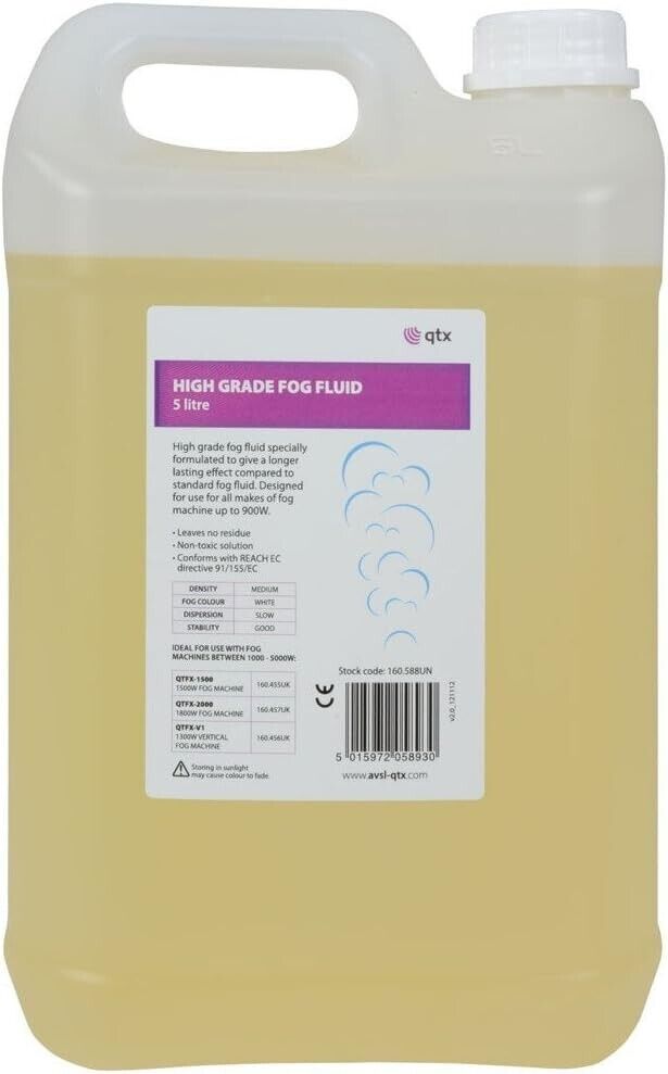 QTX | Haze Fluid 5L – Quality Fog Juice for All Smoke Machines – Medium Density, No Residue, Non-Toxic – Ideal for Gigs, Parties, Bonfire Night, Fireworks, Stage & Club Lighting