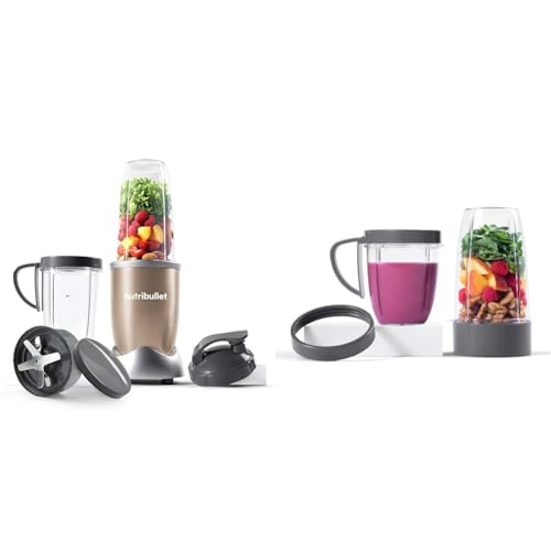 NutriBullet NBLP9 900W Blender Champagne Multi-Function Cold Beverage Smoothie Maker- 2 Cup Sizes and Stay Fresh Lid + NutriBullet Deluxe Upgrade Kit (As Seen on High Street TV), Packaging may vary