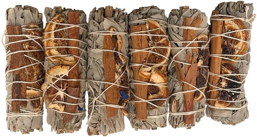 VIE Smudge Sticks, White Sage, Cinnamon and Orange 4", Pack of 6