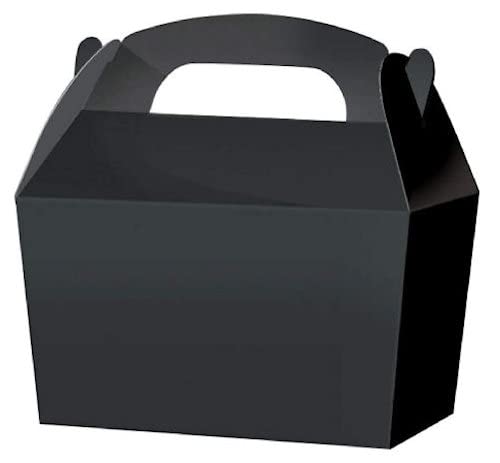 COLOURED SNACK BOXES - PACK OF 10 - Children/Kids Party Boxes Carry Food Meal Fun Picnic Birthday Wedding Favour / Baby Shower Party Box Loot Bag (Black)