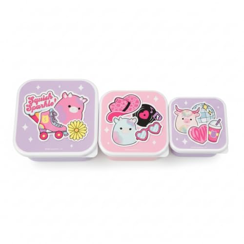 Squishmallows Nested Lunch Box Containers Set of 3 – Cute Alpaca Llama Squish Sparkle Snack Boxes with Lids, BPA Free Kids Food Storage Pots for School Lunch, Snacks & Travel