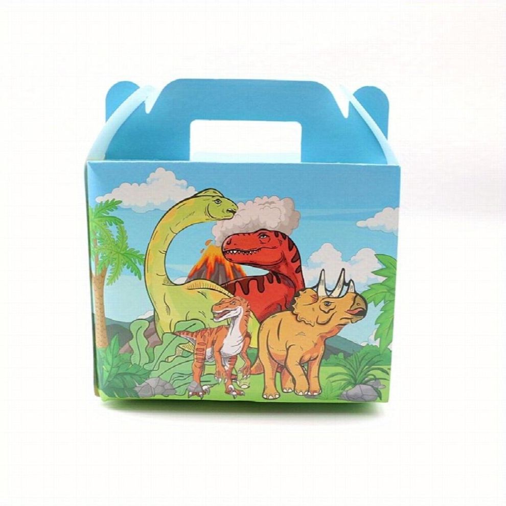 6pcs Dinosaur Theme Gift Bags Carboard Treat Boxes Snack Gable Boxes With Handles For Kids Boys Tropical Jungle Dinosaur Birthday Party