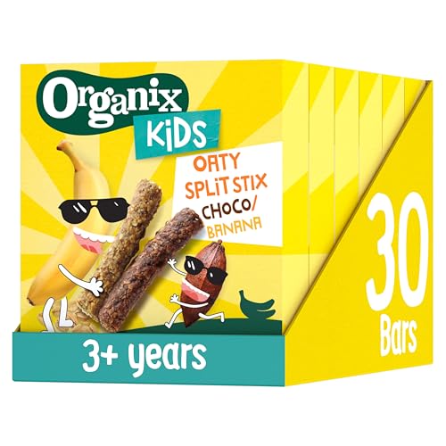 Organix Kids Oaty Split Stix Choco & Banana Snack Bars, High in Fibre, Multipack, 5 x 23 g Bars Per Box (6 Boxes Total)