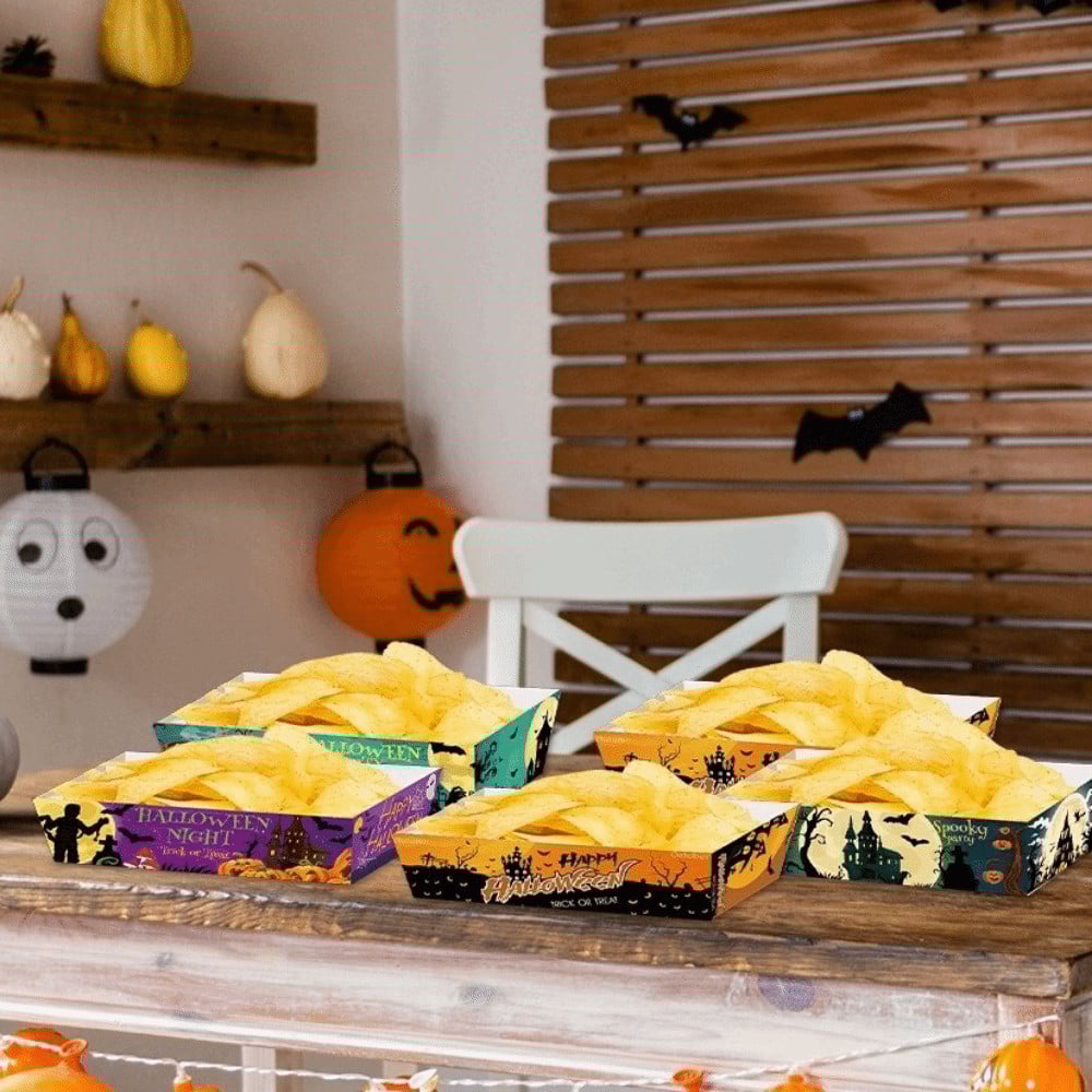 12pcs Pumpkin Halloween Party Tray Rectangular Snack Paper Boxes Kids Birthday