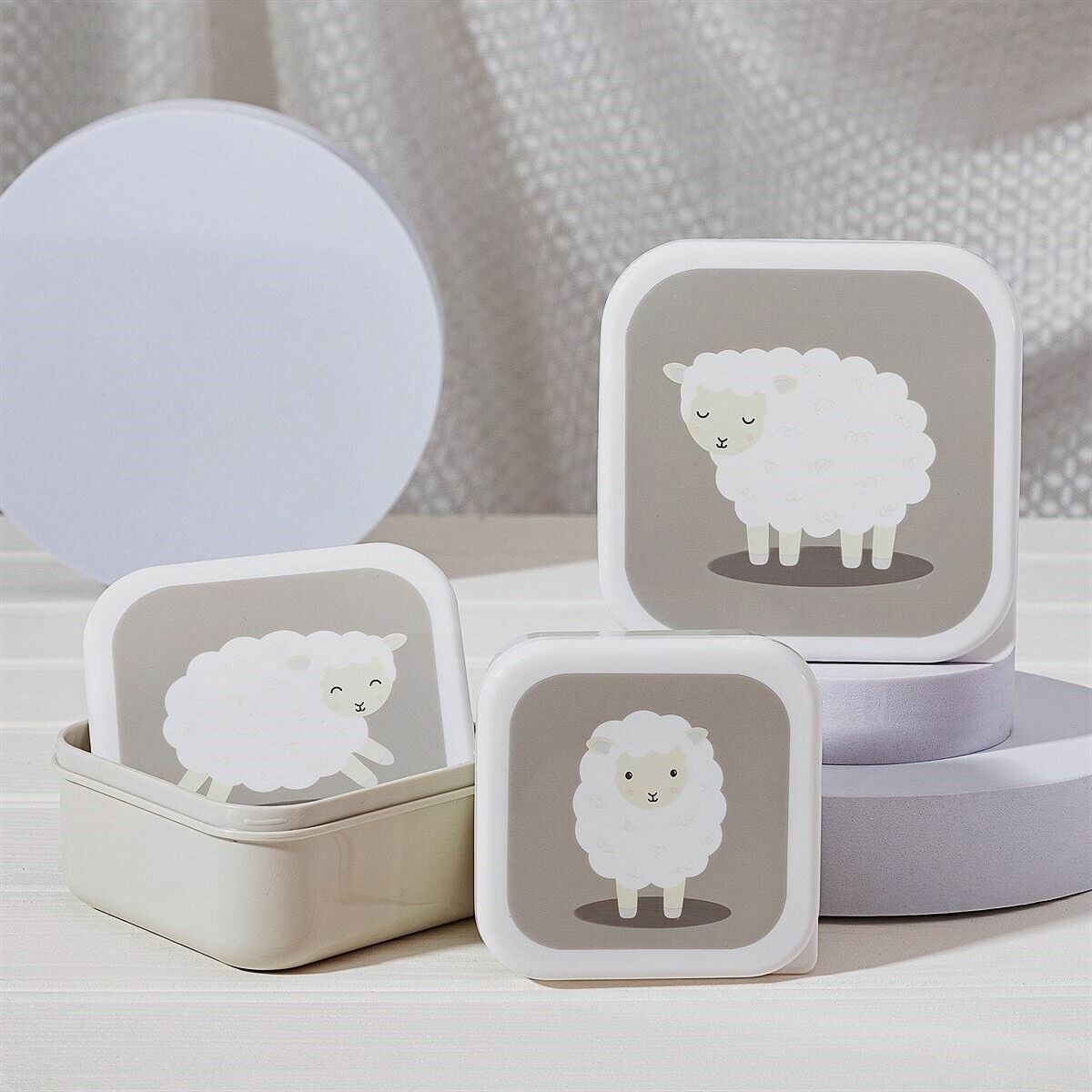 Set Of 3 Children's Kids Plastic Snack Lunch Food Storage Boxes Louie Lamb Lunch