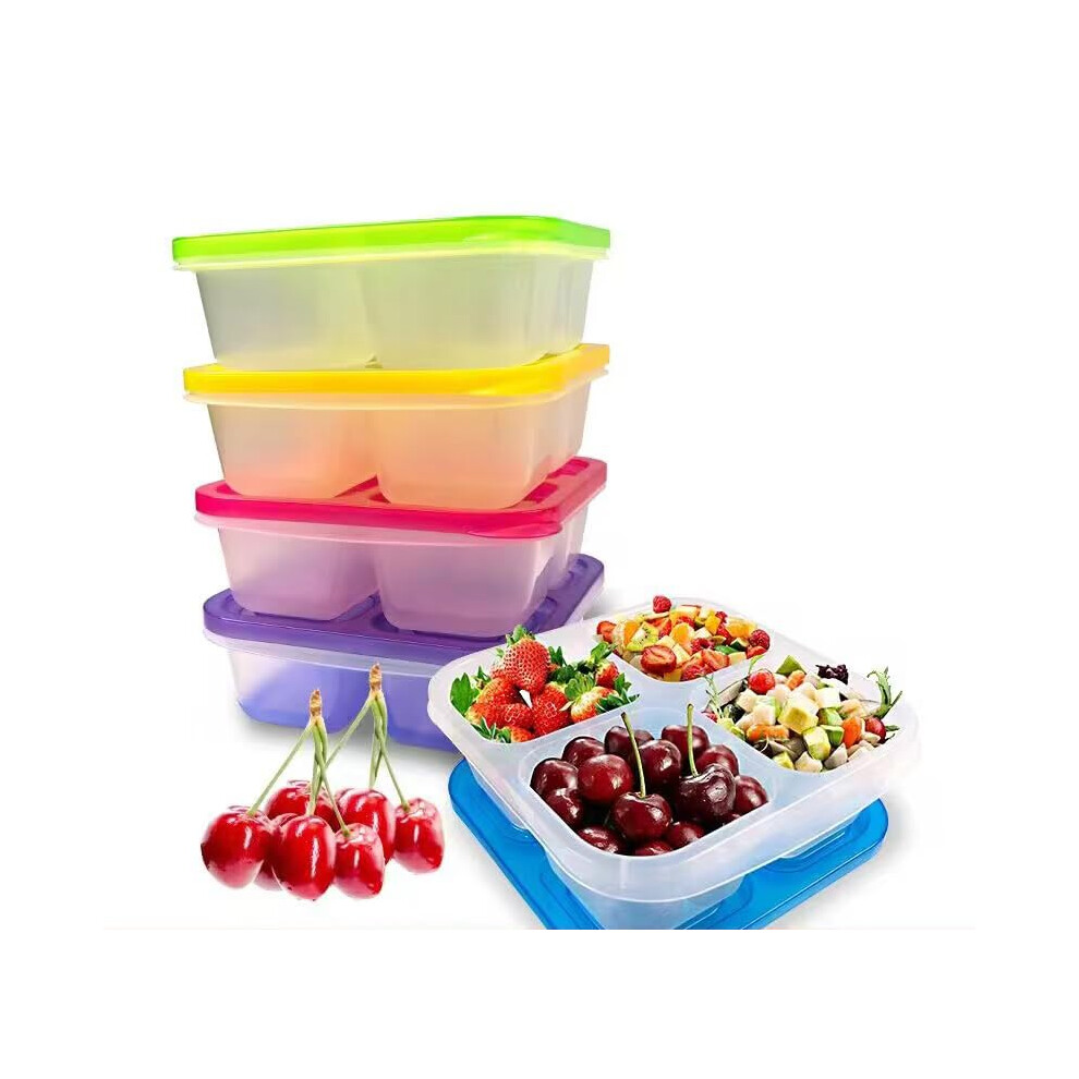 Toivize 4 Pcs Snack Box with Compartments, 5-Compartment Bento Lunch Box Snack Boxes for Kids and Adults with Transparent Lid for School Work Travel