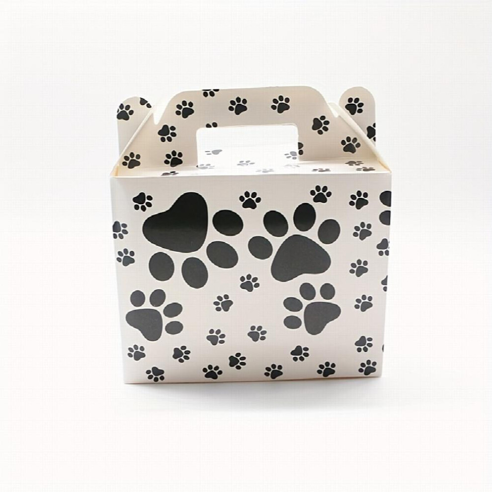 6pcs Paw Print Treat Snack Boxes Candy Goody Bags Cardboard Xmas Boxes With Handles For Kids Birthday Dog Themed Party
