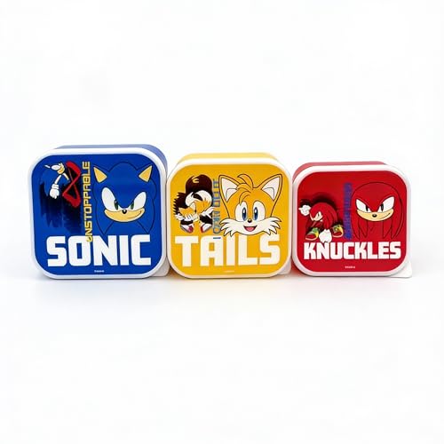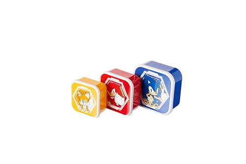 Sonic The Hedgehog Nesting Lunch Boxes Set of 3 – Kids Snack & Food Storage Containers with Push Fit Lids – Sonic, Tails & Knuckles BPA-Free Lunch Box Set for School, Travel & Picnics