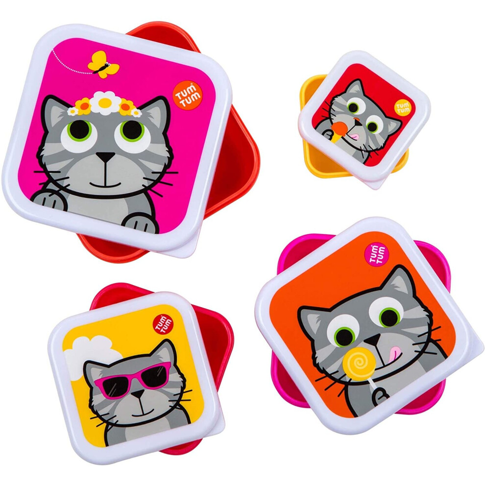 TUM TUM Nesting Snack Pots for Kids, Snack Boxes for Kids, Kids Snack Box Set, BPA Free - Bluebell The Cat