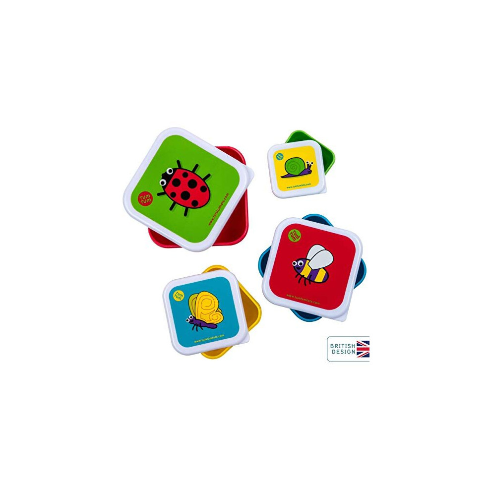 TUM TUM Nesting Snack Pots for Kids, Snack Boxes, Kids Snack Box Set, BPA Free - Bugs