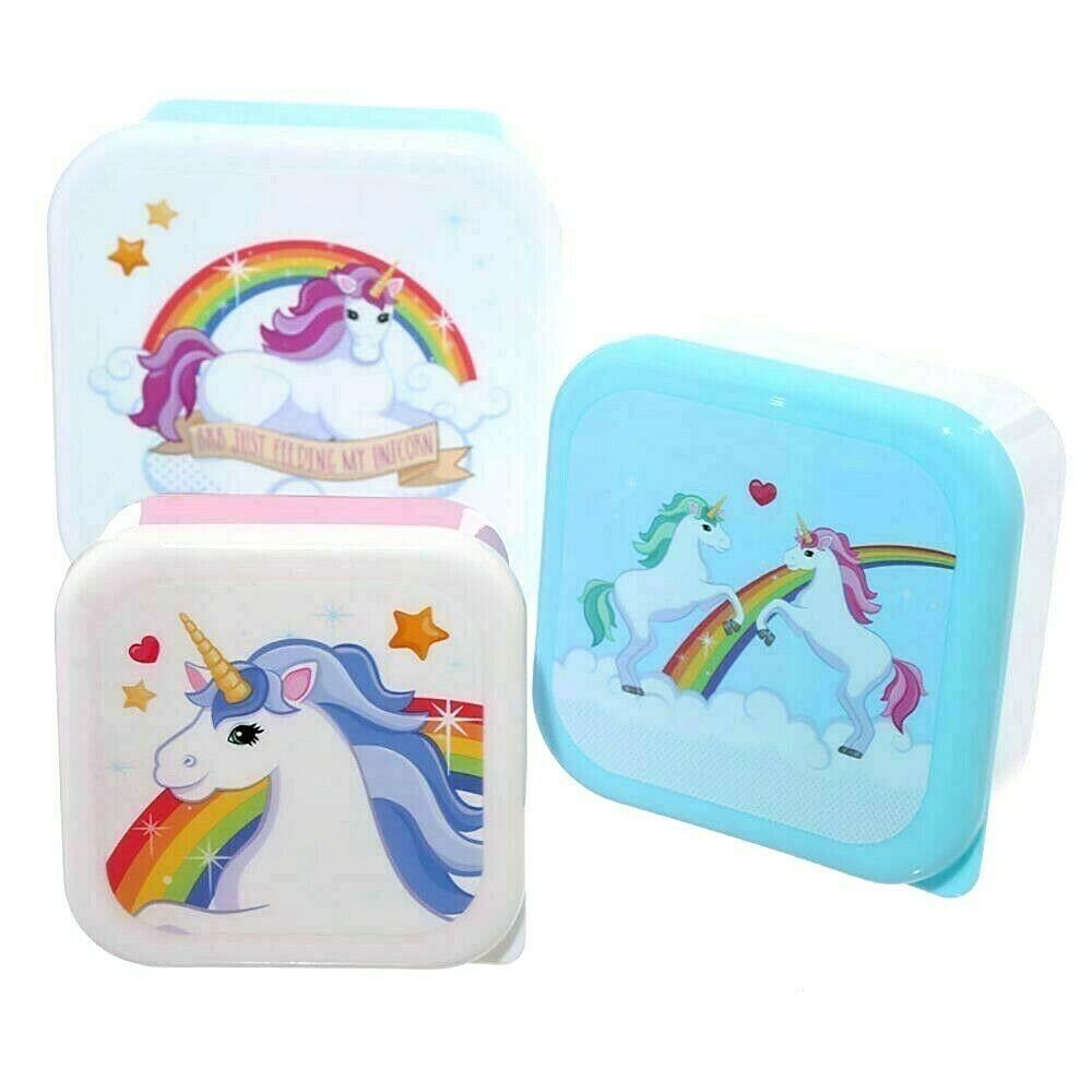 Kids Unicorn Set Of 3 School Nursery Snack Lunch Boxes Sandwich Food Storage Box