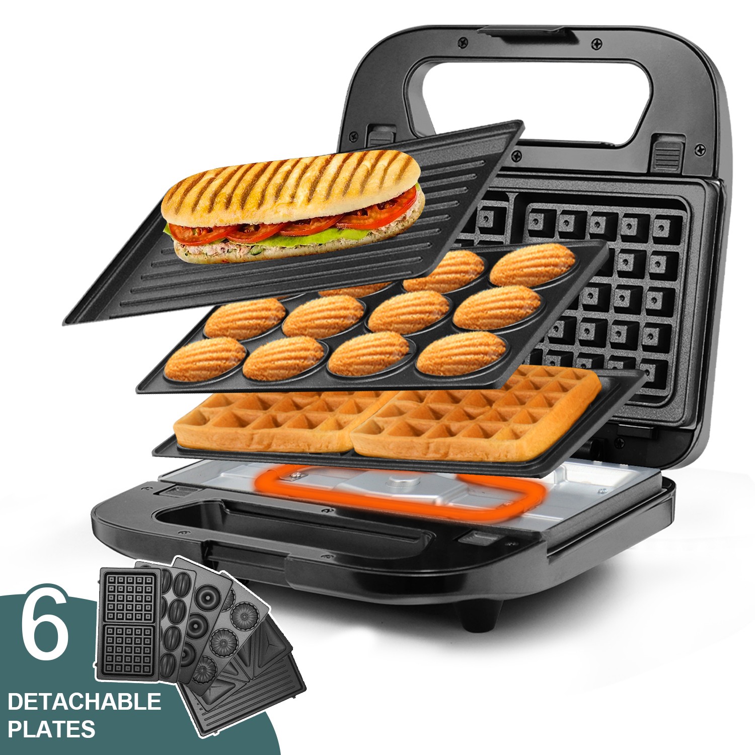 SUPERLEX Snack Maker 6-in-1 Sandwich Toaster Waffle Maker Grill Panini Press SS