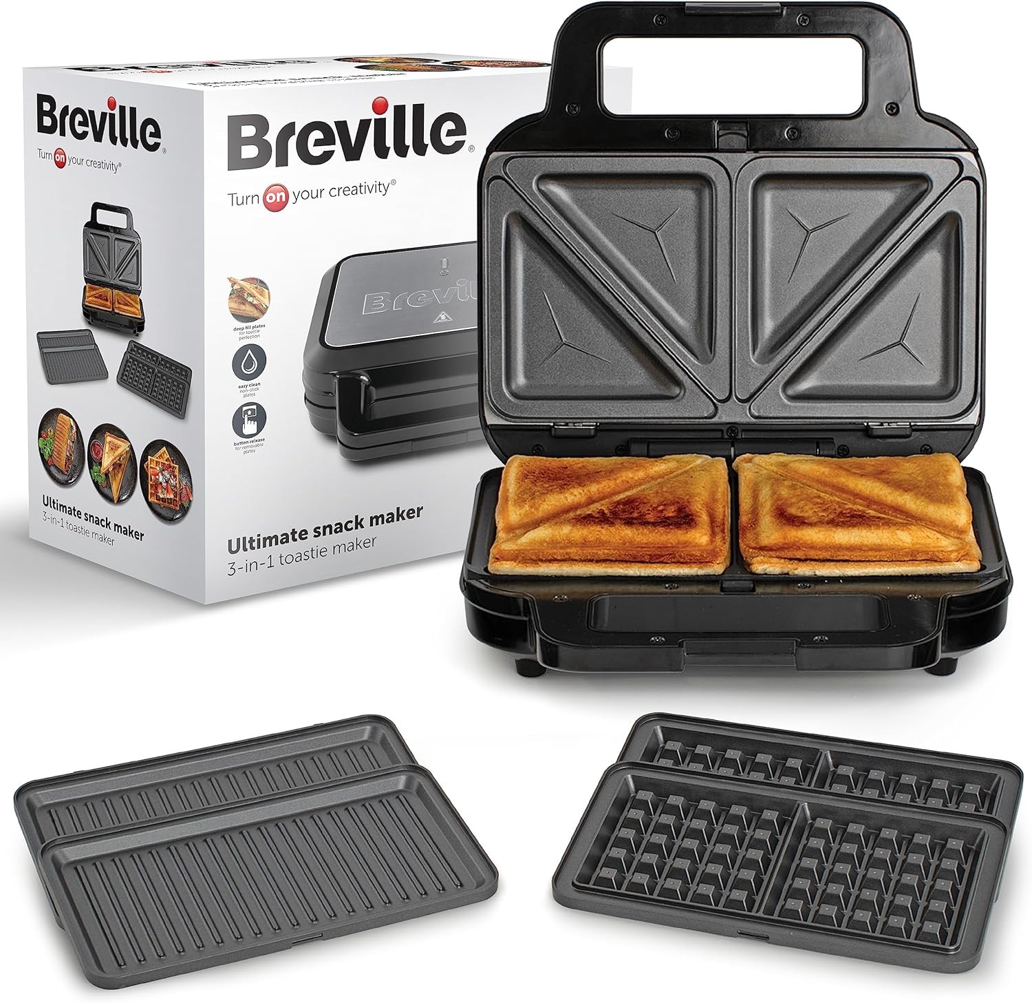 Breville 3-In-1 Ultimate Snack Maker | Deep Fill Toastie Maker, Waffle Maker & P