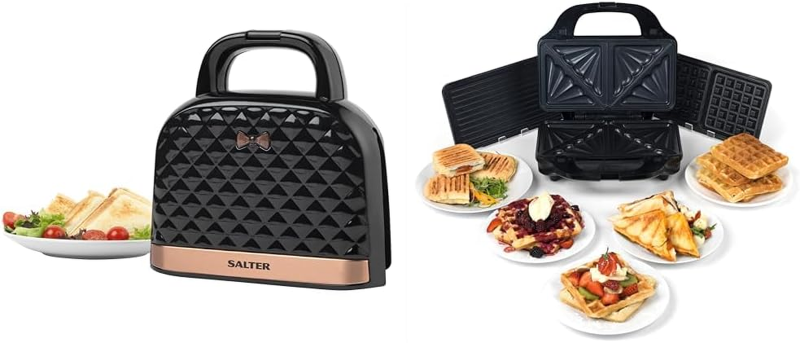 Salter Handbag Style Sandwich Toaster, 3-in-1 Snack Maker - Deep Fill Waffle Iron, Panini Press & Toastie Maker, Rose Gold, Non-Stick (Teflon/Ceramic), Stainless Steel/Aluminum exterior