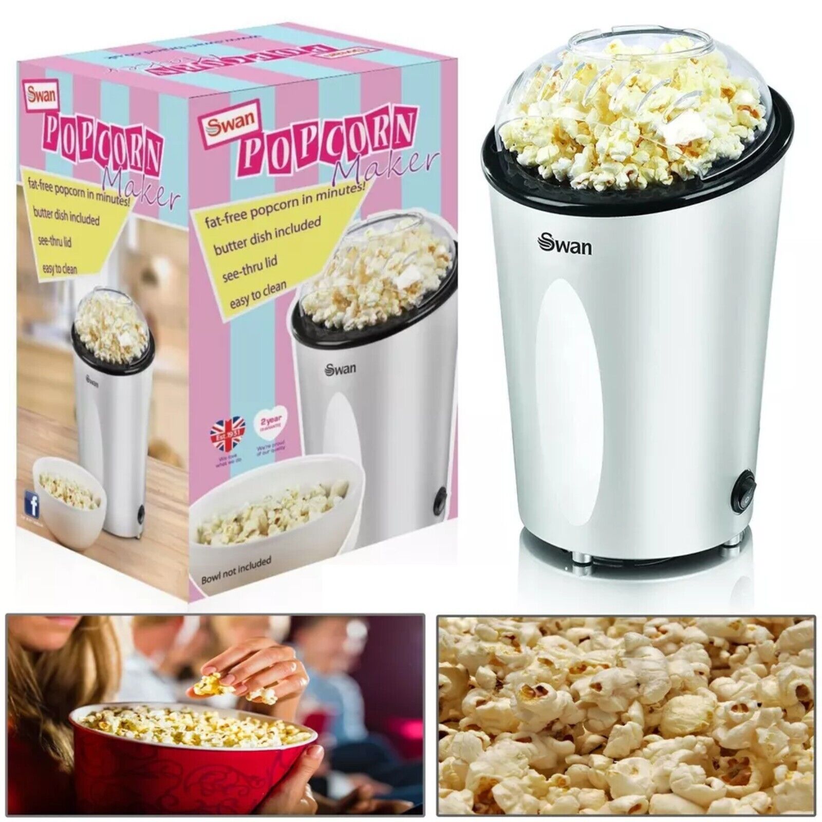 Swan Fat Free Silver Popcorn Maker Snack Movie Time Pop Corn - SF14N UK