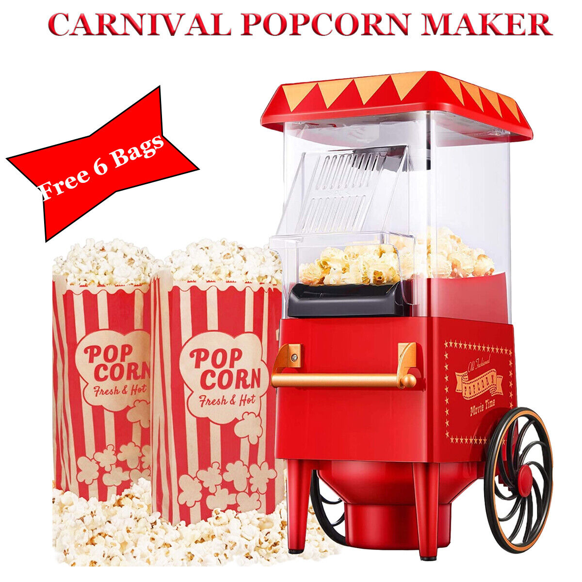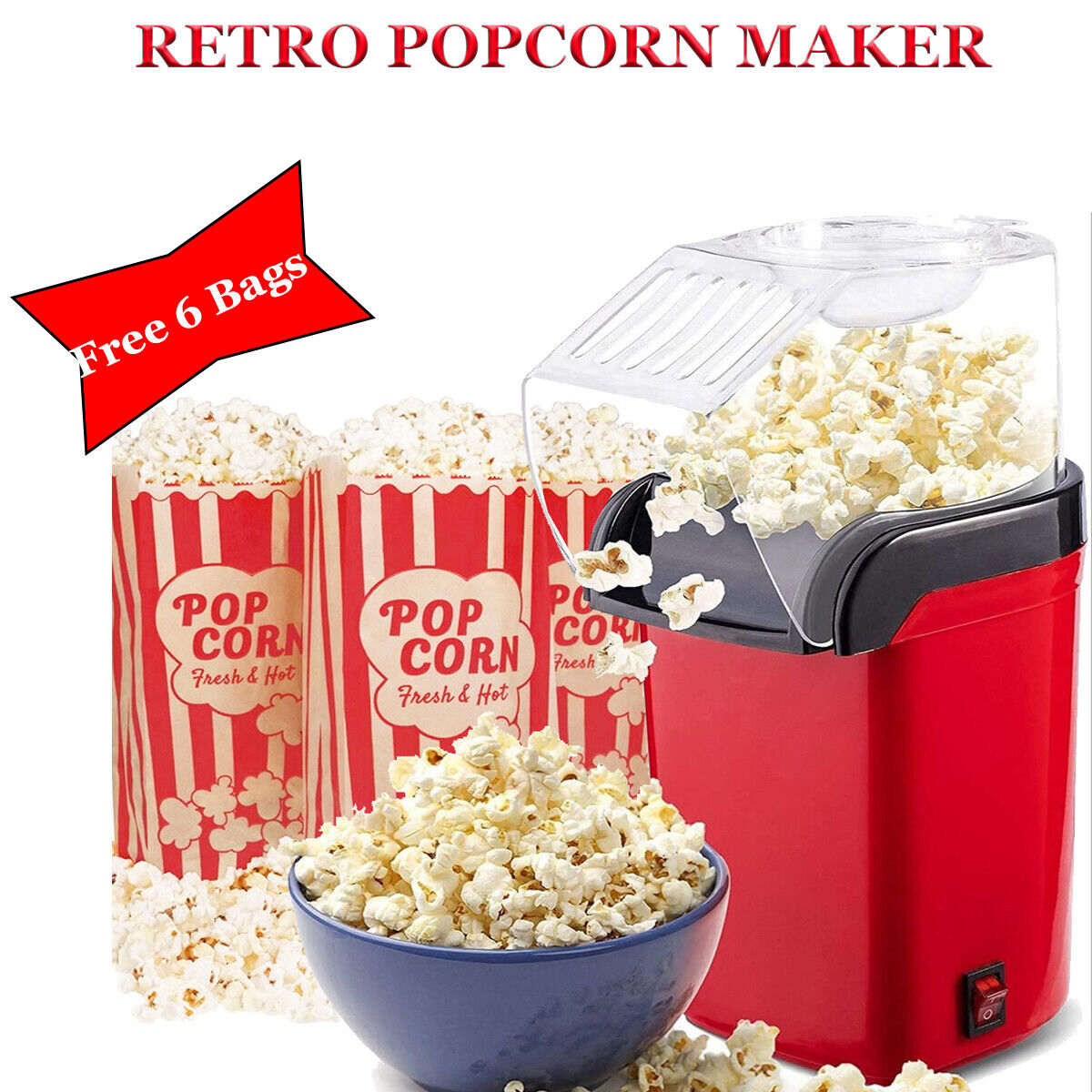 Retro Hot Air Popcorn Maker Electric Popper Machine Fat Free Snack 1200W 6 Bags