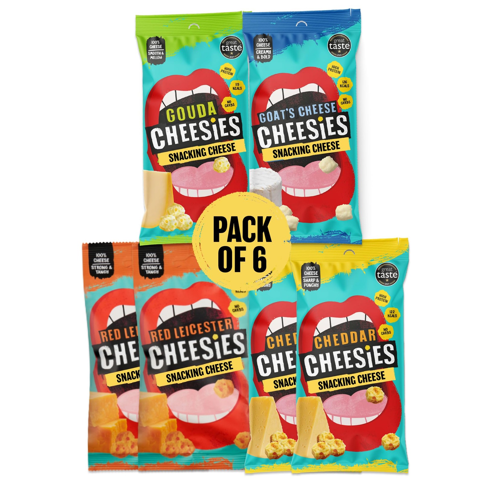 CHEESIES | Crunchy Snacking Cheese Keto Snack | Variety Pack | 100% Cheese | Sugar Free, Gluten Free, No Carb | High Protein and Vegetarian | Crunchy, Baked and Tasty | Multipack (20 g (Pack of 6))