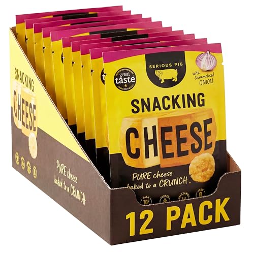 Serious Pig Snacking Cheese Caramelised Onion Flavour - Pure Cheese Crisps High Protein Low Carb (12 x 24g)