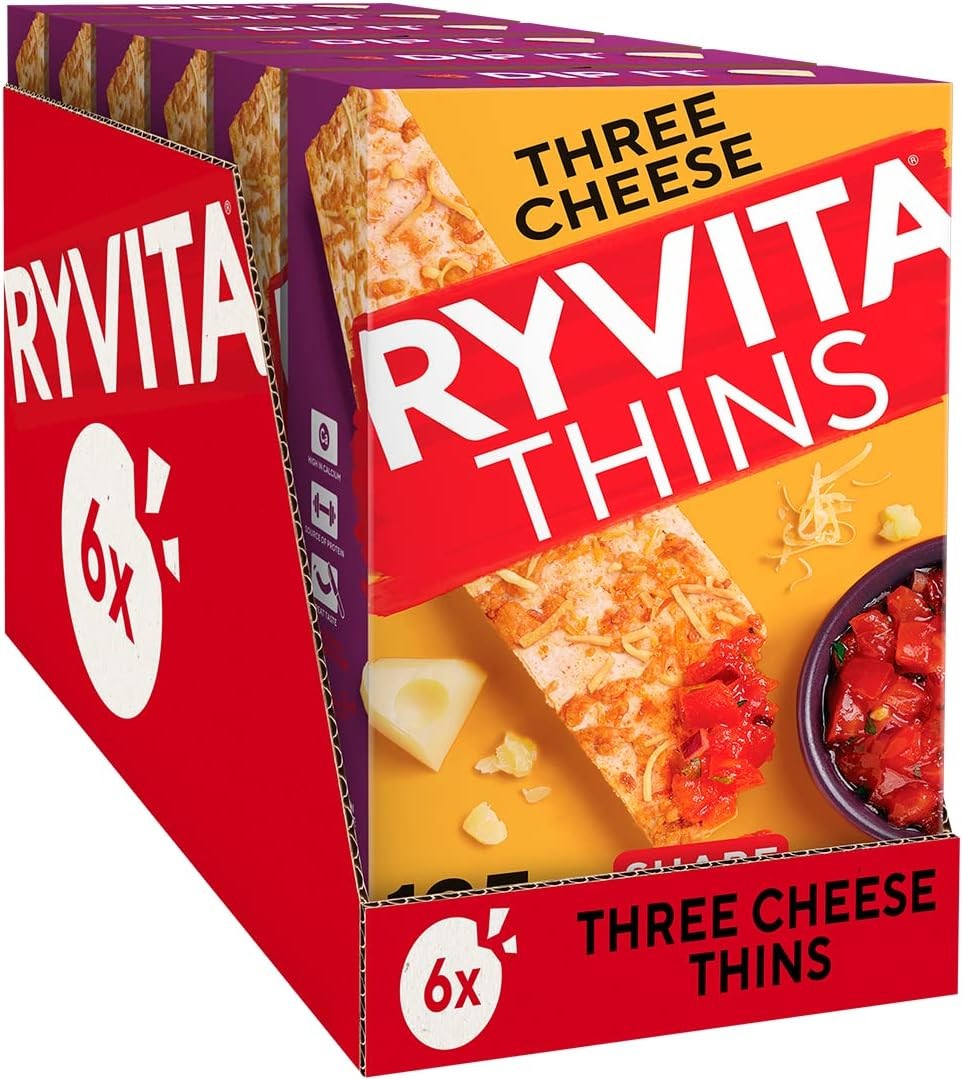 Ryvita Three Cheese Thins | Dipping, Snacking, Sharing | Fibre | Healthy | 6 PA