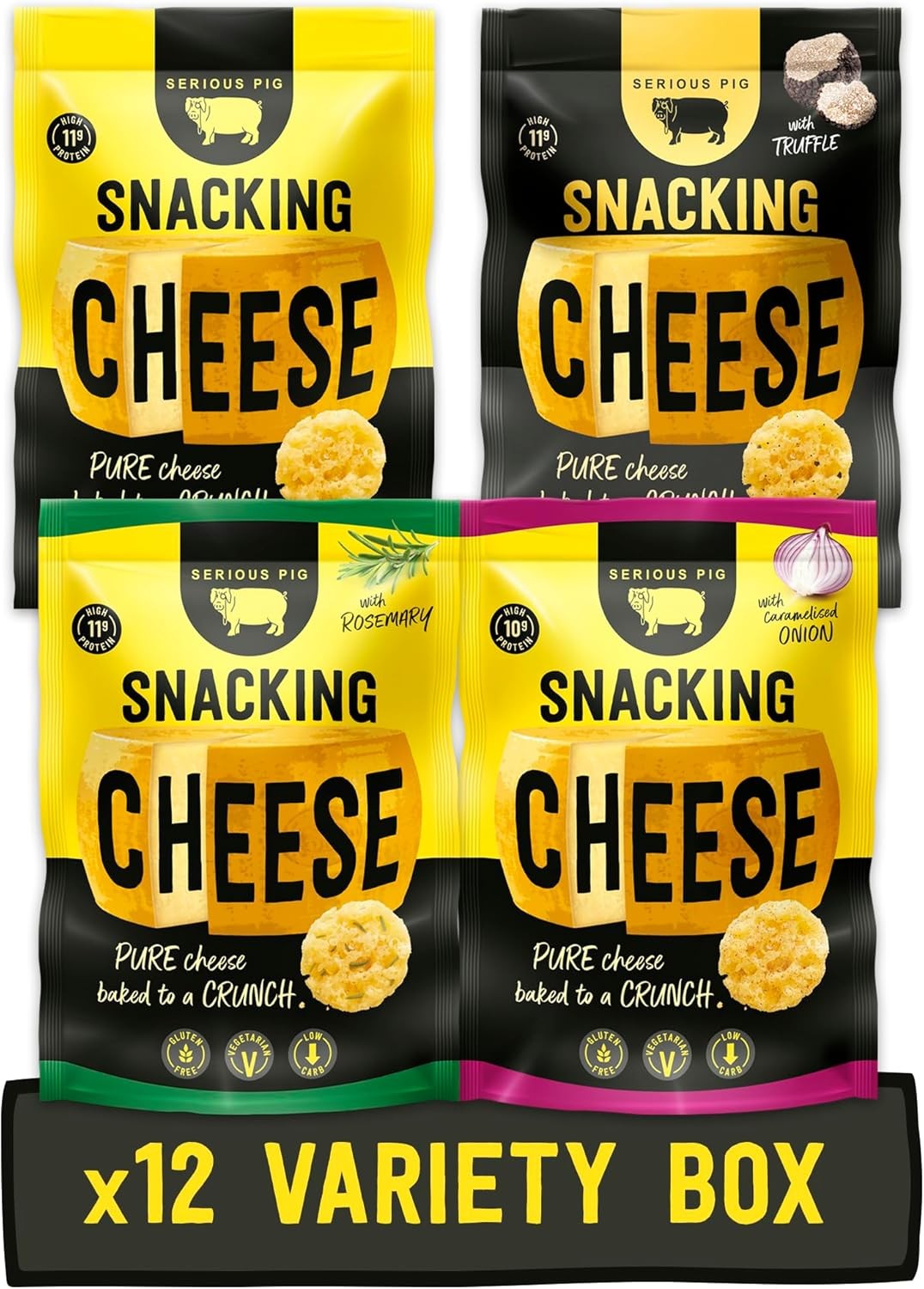 Serious Pig Snacking Cheese Variety Pack, Classic Rosemary Truffle Caramelised Onion Flavours (12 x 24g)