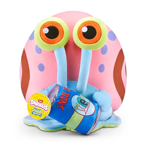 Snackles 14-inch Licensed Character SpongeBob Squarepants Plush (GARY THE SNAIL) by ZURU, Soft Doll and Cuddly Pillow Toy with Snack Accessory, 35 cm