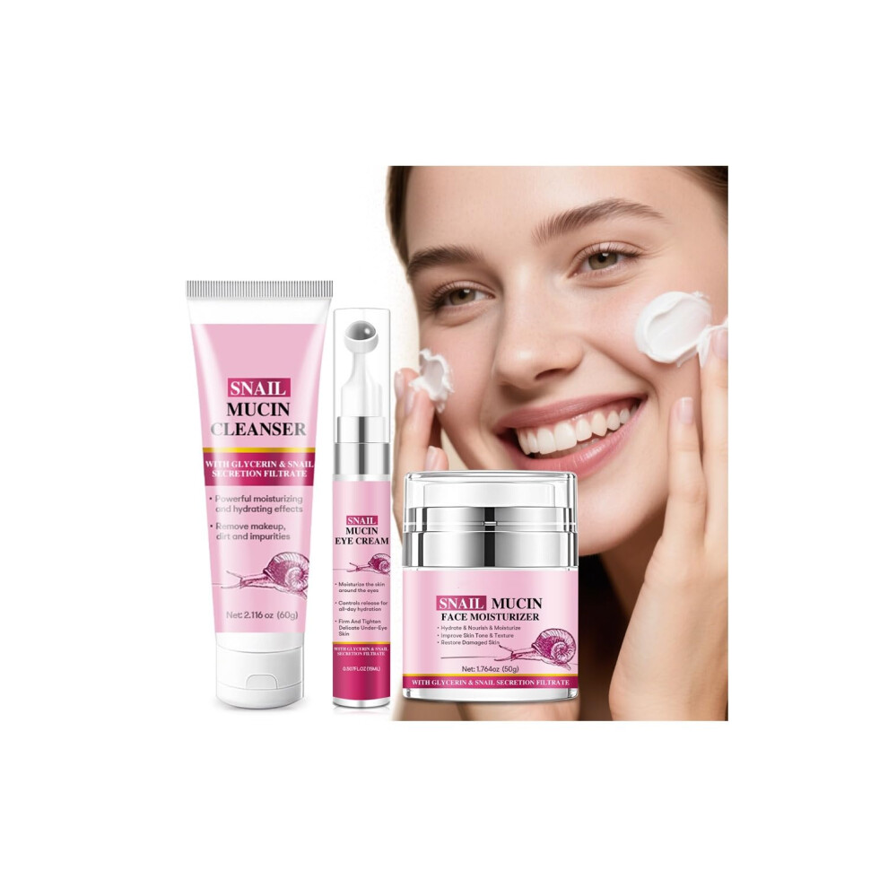 Snail Mucin Skincare Set with Cleanser Eye Cream Moisturizer, Deep Hydration Korean Facial Kit
