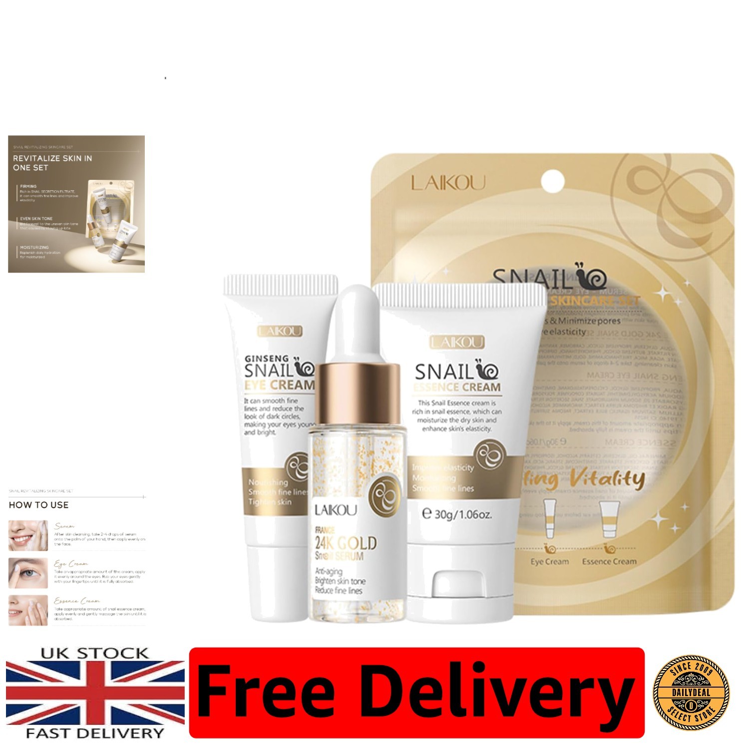 Luxury Snail Mucin Skincare Set: Gold Serum, Eye Cream & Essence - Travel Ready
