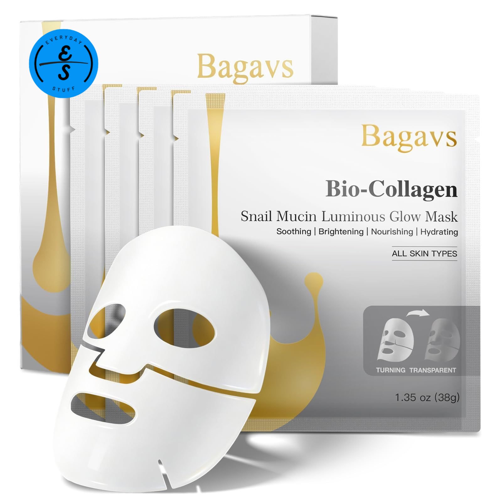 Bagavs Bio-Collagen Snail Mucin Luminous Glow Mask, 4 count (Pack of 1)