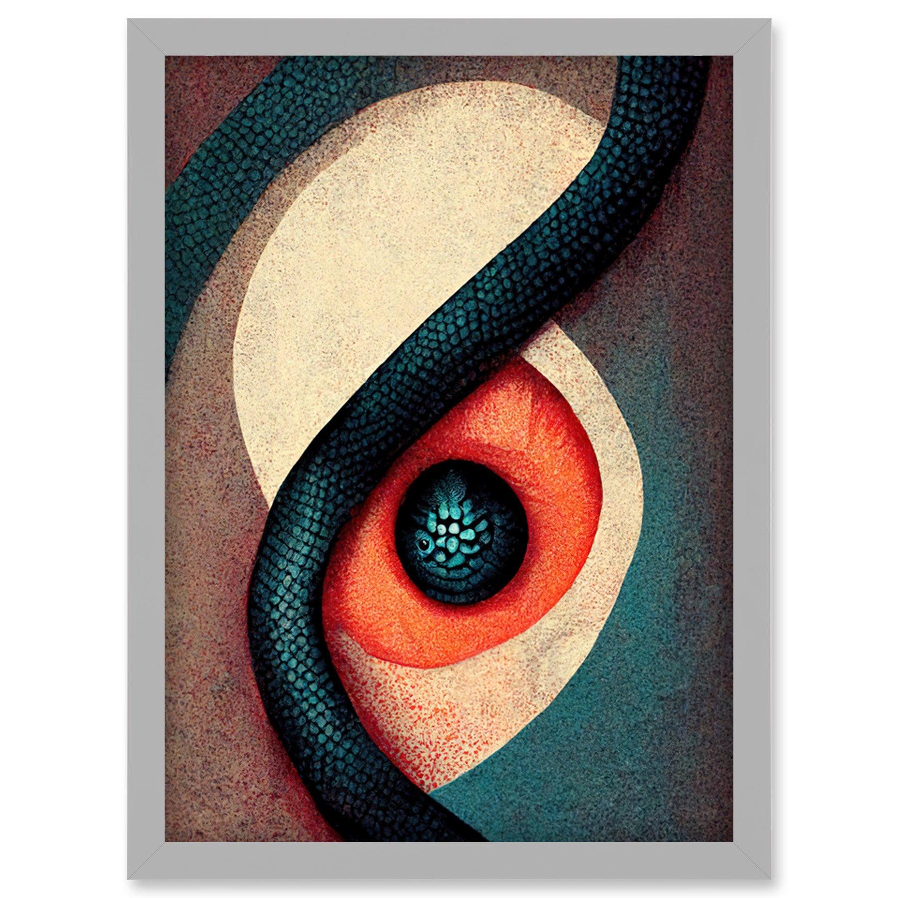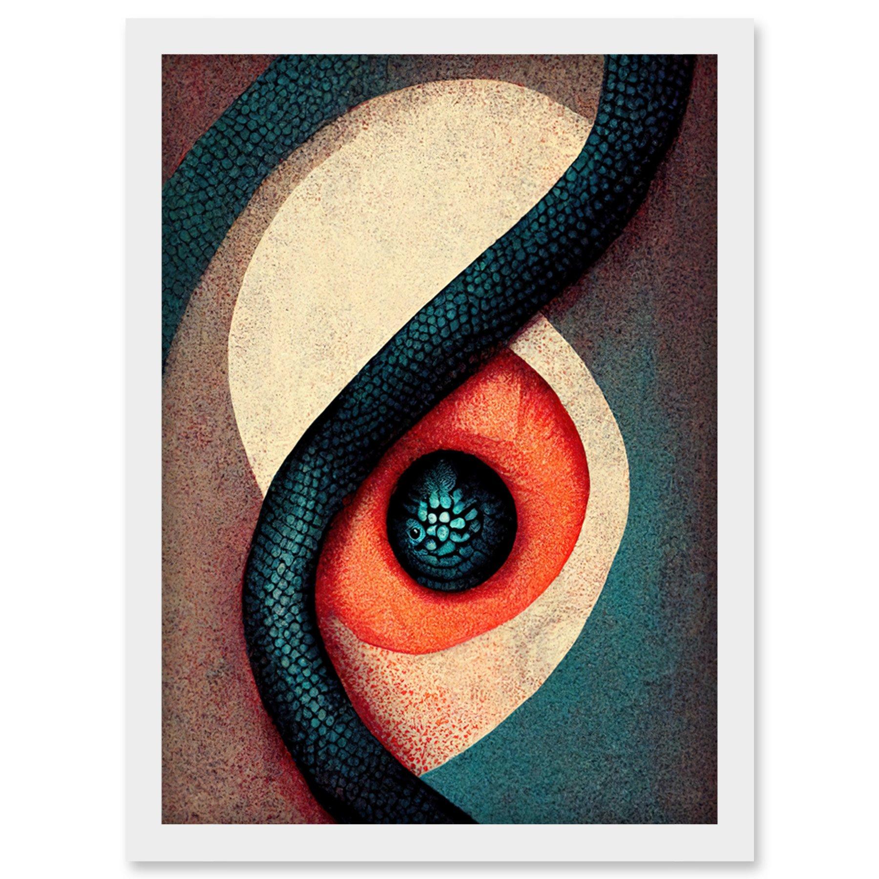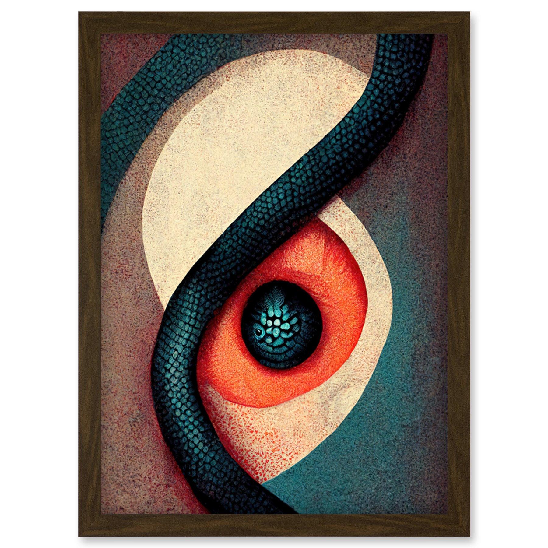 Snake Eyes Abstract Scales Teal Red Artwork Framed Wall Art Print A4