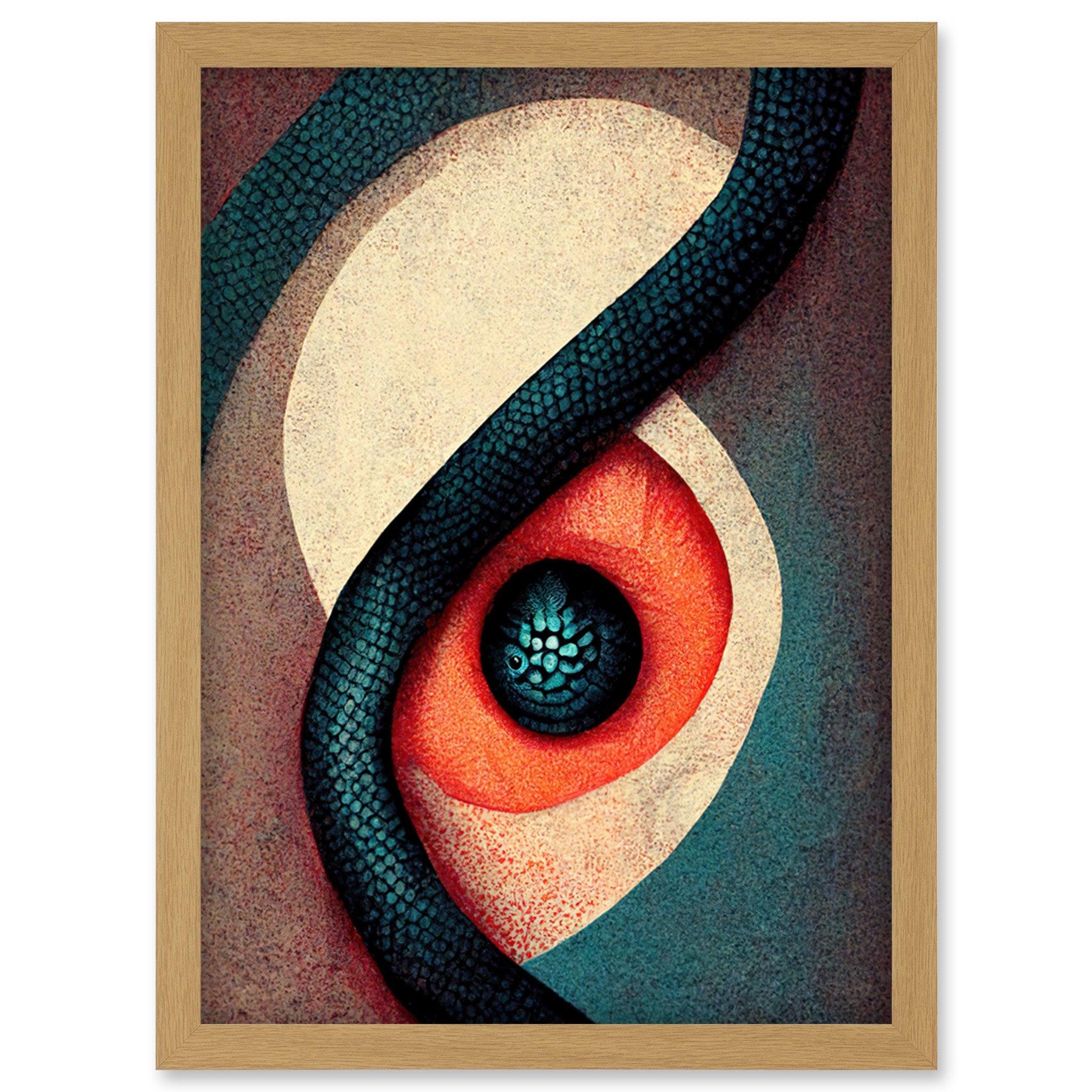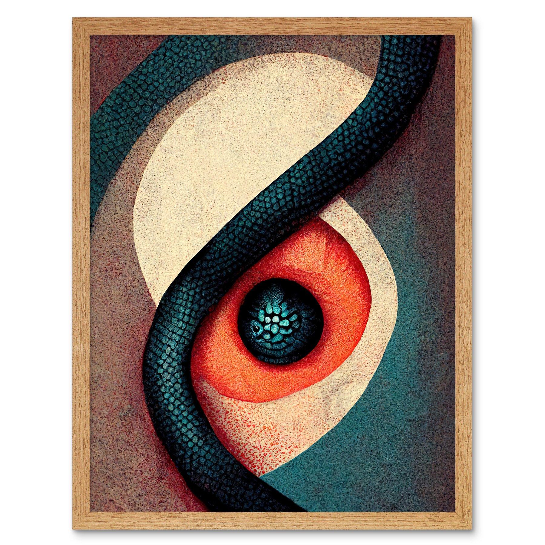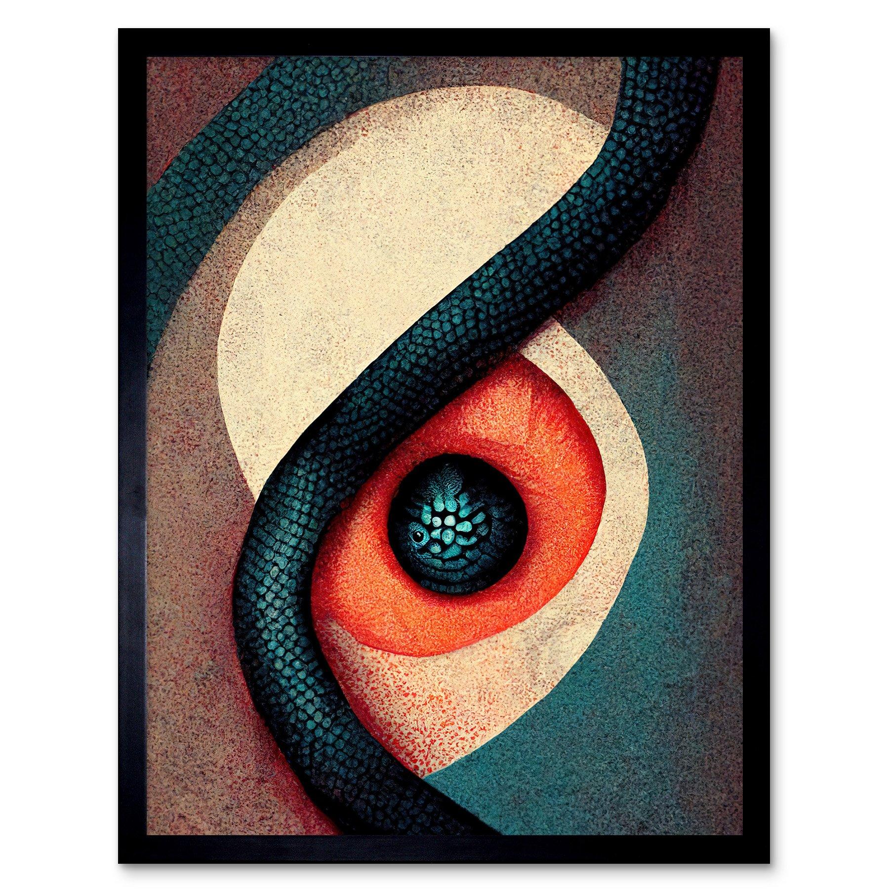 Snake Eyes Abstract Scales Teal Red Art Print Framed Poster Wall Decor 12x16 inch
