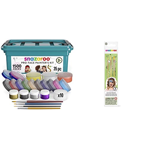 Snazaroo Professional Face Paint Kit for Kids and Adults, 35 Colours, 11pcs, Brushes, Glitter Gels & 1192505US Face Paint Brush Set-3 Pcs, Green