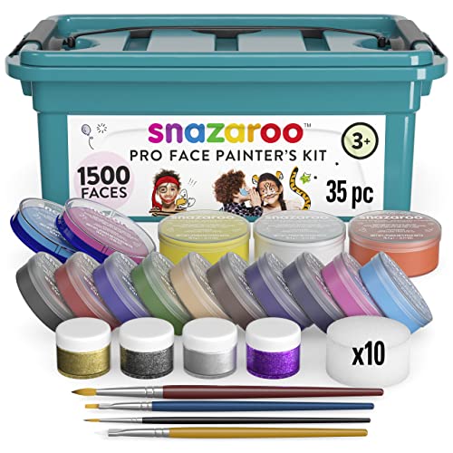 Snazaroo Professional Face Paint Kit for Kids and Adults, 35 Pieces, 15 Colours, Brushes, Glitter Gels, Sponges, Guide, Water Based, Easily Washable, Makeup, Body Painting