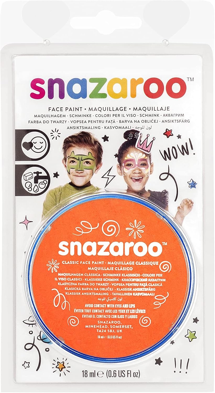 Snazaroo Face and Body Paint Blister Pack, Orange, 18.8g Professional Water Bas