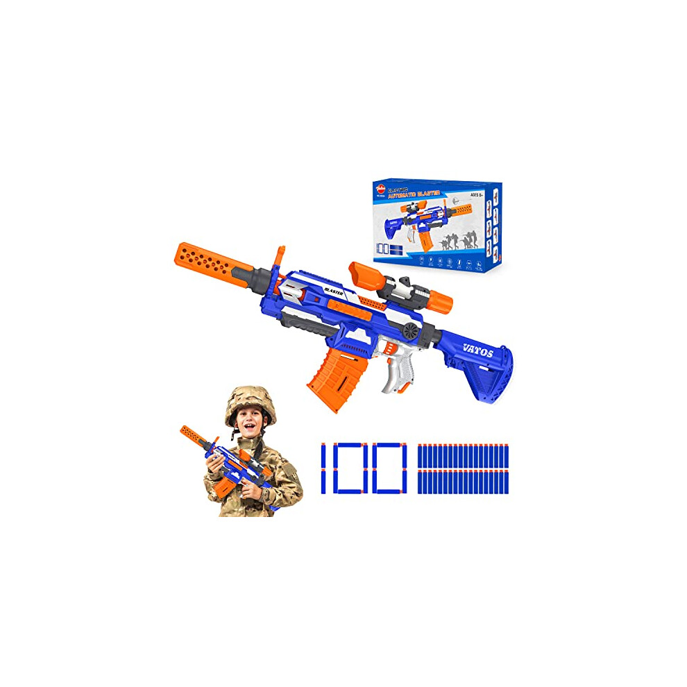 VATOS Toy Gun for Nerf Guns - Automatic Machine Gun for Boys Girls Sniper Rifle with Scope Electric Toy Foam Blaster 100 PCS Darts | Adjustable Length