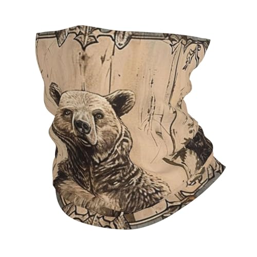 Bear Trees Paw Prints Rustic Wood Wild Animal Funny Men Women Face Covering Scarf Multifunctional Snood Scarf Windproof Snood For Walking Running Hiking Cycling