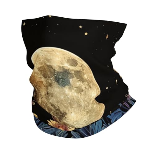 Moon Wildflower And Plant Flower Dreamy Black Men Women Face Covering Scarf Breathable Snood Multifunctional Snood Scarf For Outdoor Hiking Summer Walking