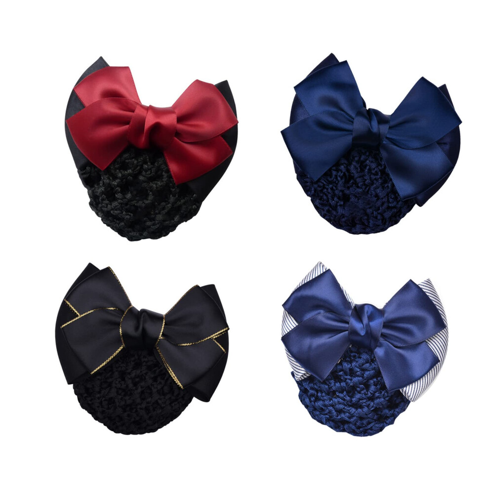 IRIIRIO 4 Pieces Women Hair Clips with Snood Bowknot Hair Snood with Clips Bow Barrette Hair Clip Bun Cover Set