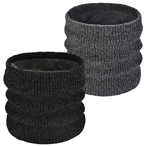 Thermal Neck Warmer Fleece Snood for Men Women Neck Gaiter Warm Ladies Winter Scarf Knitted Snood Face Mask Snood Scarf for Running Cycling Skiing Motorcycle Sport(2pcs Snoods, Black + Dark Grey)