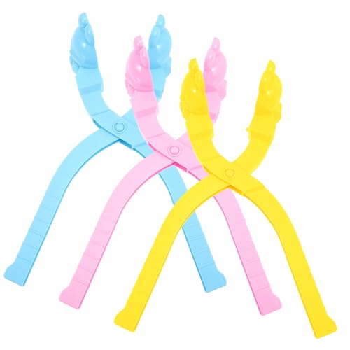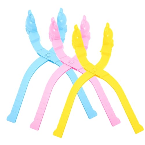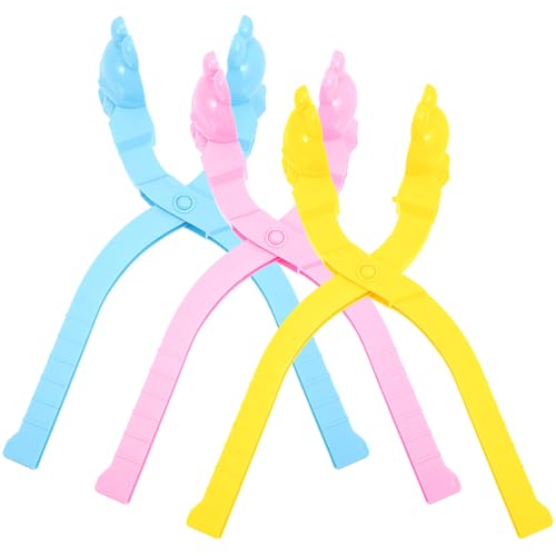 KONTONTY 3pcs Snow Ergonomic Maker Clips for Outdoor Winter Fun Multi-shape and Snow Ball Molds Easy to Use in Pink Blue Yellow