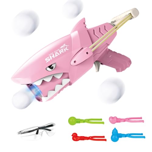 CutitiUU 1 PCS Shark Snowball Gun+4 PCS Snowball Clamps+1 Pair Goggles,Snowball Maker Clips,Outdoor Snow Ball Maker Toy,Winter Snowball Fight Toy,Snowball Launcher Toy Boys and Girls Games (Pink)