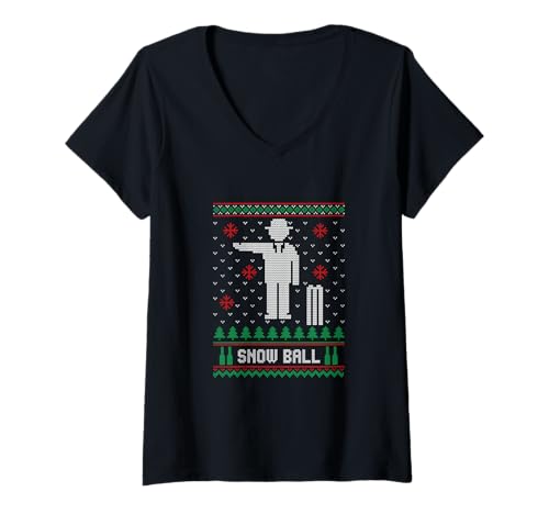 Womens Snow Ball Christmas Ugly Design for Cricket Game Lovers V-Neck T-Shirt