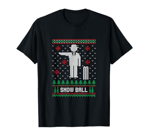 Snow Ball Christmas ugly design for Cricket game lovers T-Shirt