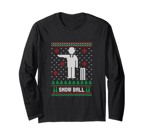 Snow Ball Christmas Ugly Design for Cricket Game Lovers Long Sleeve T-Shirt
