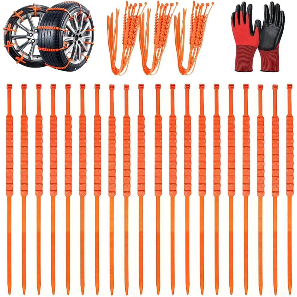 20PCS Snow Chains for Car Tires AntiSkid Snow Protection Universal Fit for SUV Truck Orange