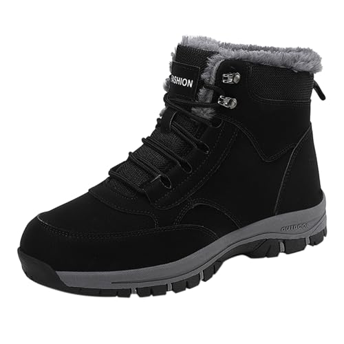 Snow Boots Men Winter Boots Faux Furry Lined Ankle Boots Waterproof Slip On Comfortable Non Slip Hiking Boots Lace Up Dog Walking Winter Shoes Mens Snow Shoes (Black, 6)