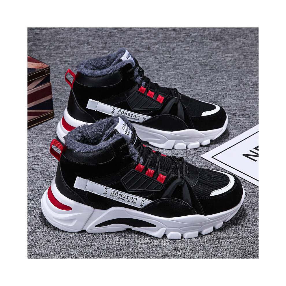 Winter Male British Hight-Top Shoes Mid-Top Mens Boot Shoes Brushed and Thick Warm Snow Cotton Boots Mens Shoes