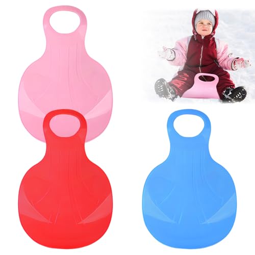 Snow Sledge Board,2 Pcs Snow Sled Board with Handle,Kids Heavy Duty Snow Sledge,Disc Child Skiboard,Snowboard Sleds for Children Winter Outdoor Toys Play on Ice Snow Grass and Sand (Pink Red)