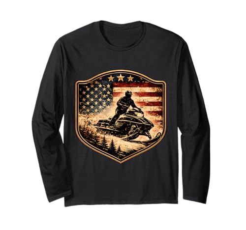 Snowmobile USA Flag Snow Sled Patriotic Snowmobiling America Long Sleeve T-Shirt