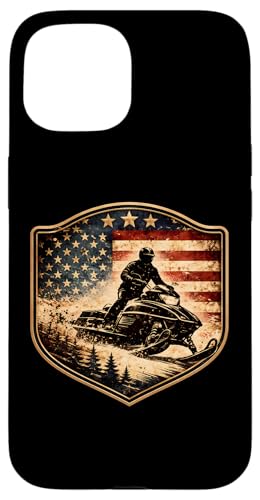 Snowmobile USA Flag Snow Sled Patriotic Snowmobiling America Case for iPhone 15