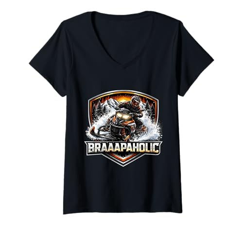 Women's Braaapholic Funny Snowmobile Snow Sled Owner Snowmobiling V-Neck T-Shirt